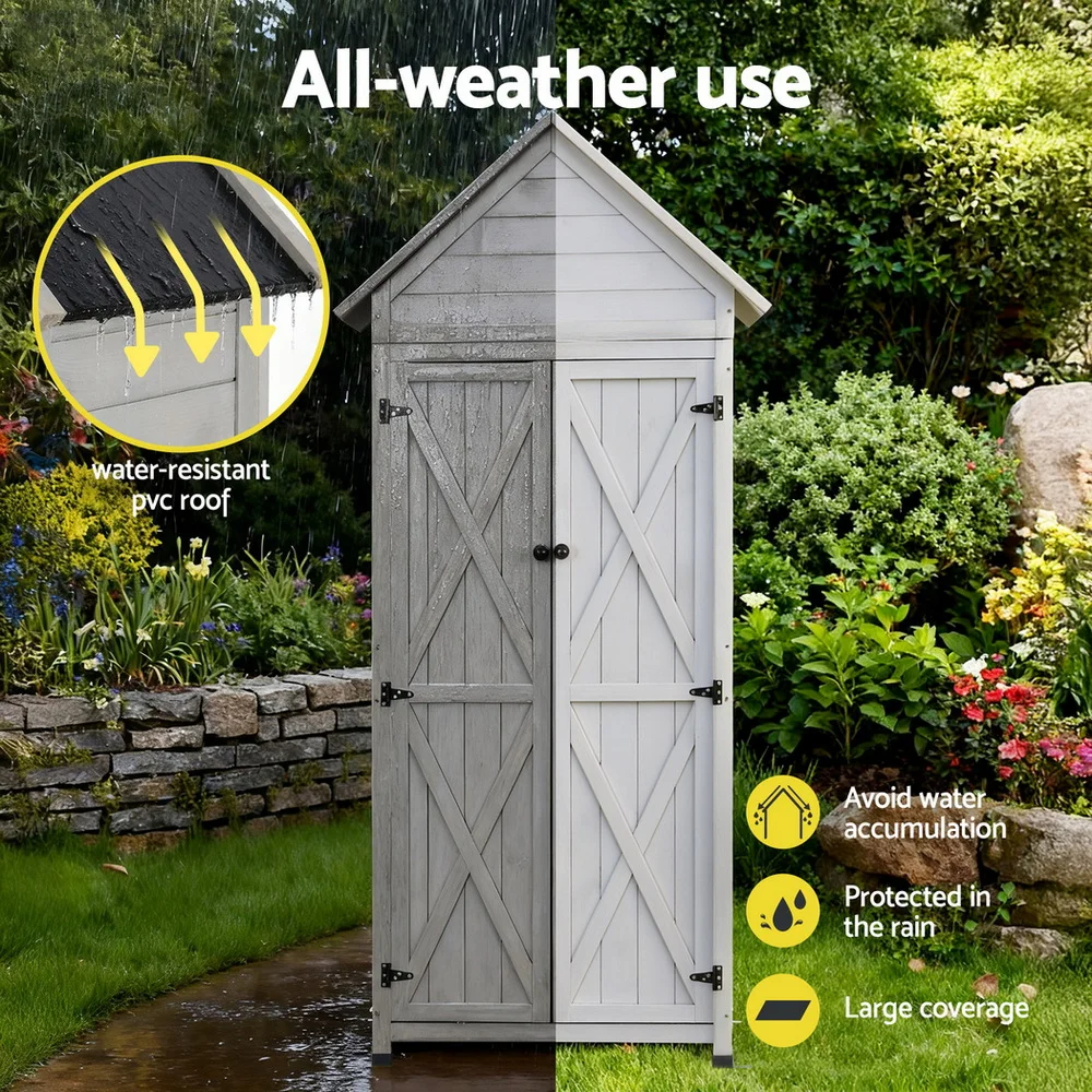 Gardeon Grey Outdoor Storage Cabinet - Weatherproof Fir Wood & PVC Roof, 69x39x182cm, Lockable, 3 Shelves, Easy Assembly