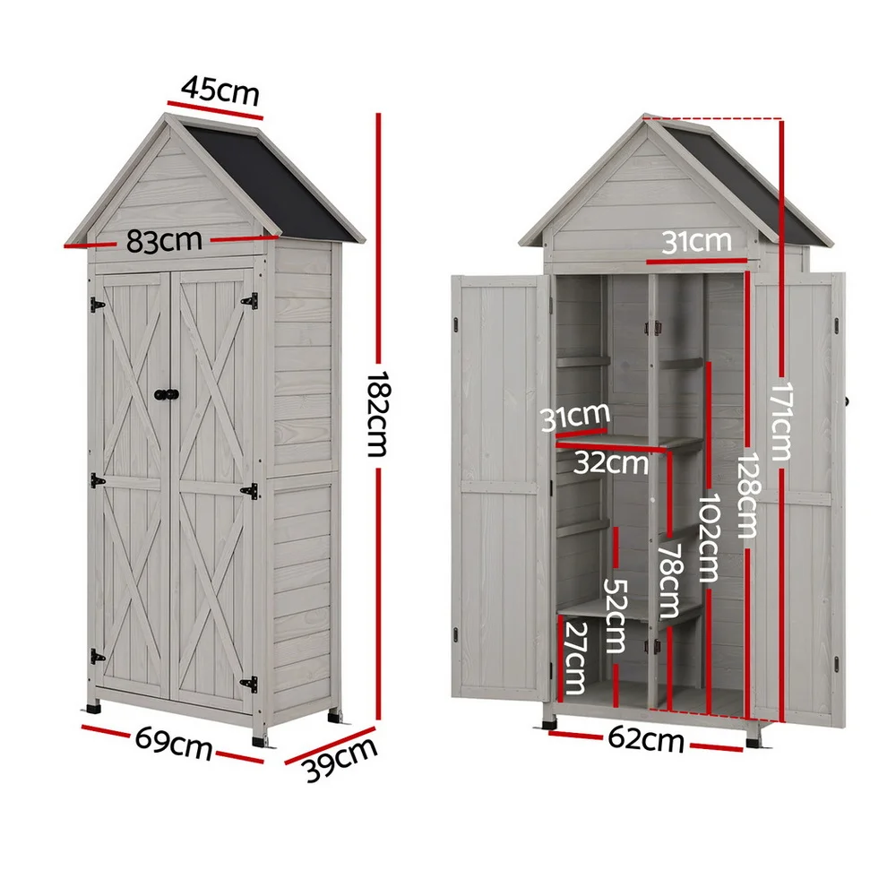 Keep your outdoor space organised and stylish with the Gardeon Outdoor Storage Cabinet Cupboard. This lockable tool organiser and shed features a spacious interior with three shelves, providing ample storage for all your tools and gear. Crafted from solid fir wood with a durable PVC roof, this weatherproof cabinet is built to withstand the elements all year round. The 2cm thick wood resists cracks and corrosion, ensuring longevity. Easy to assemble with numbered parts, full hardware, and a clear guide, this versatile storage solution is perfect for gardens, balconies, or patios. Please ensure safety by anchoring the furniture to prevent tip overs.