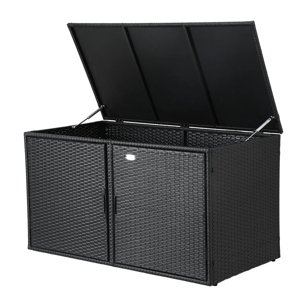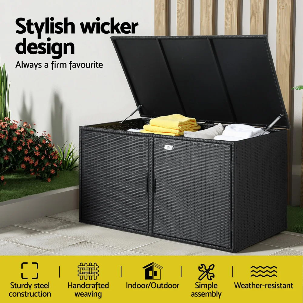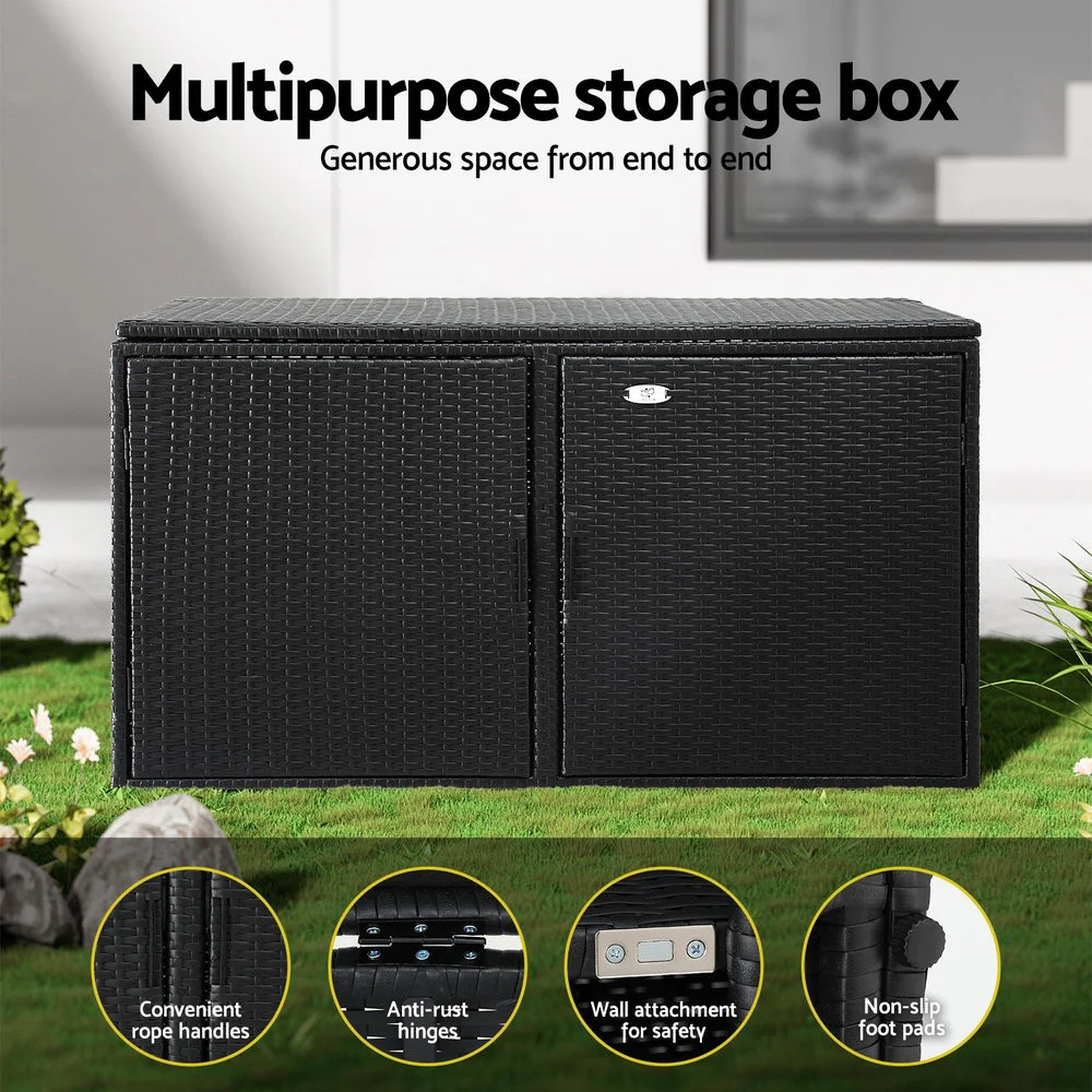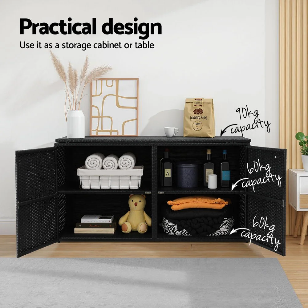 Gardeon Black Wicker Outdoor Storage Cabinet - 2-in-1 Deck Shed, 88 Gal Capacity, Steel Frame, UV & Weather Resistant