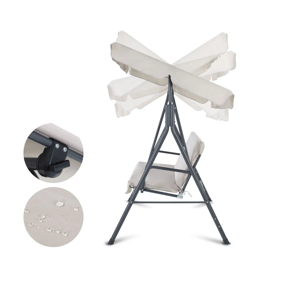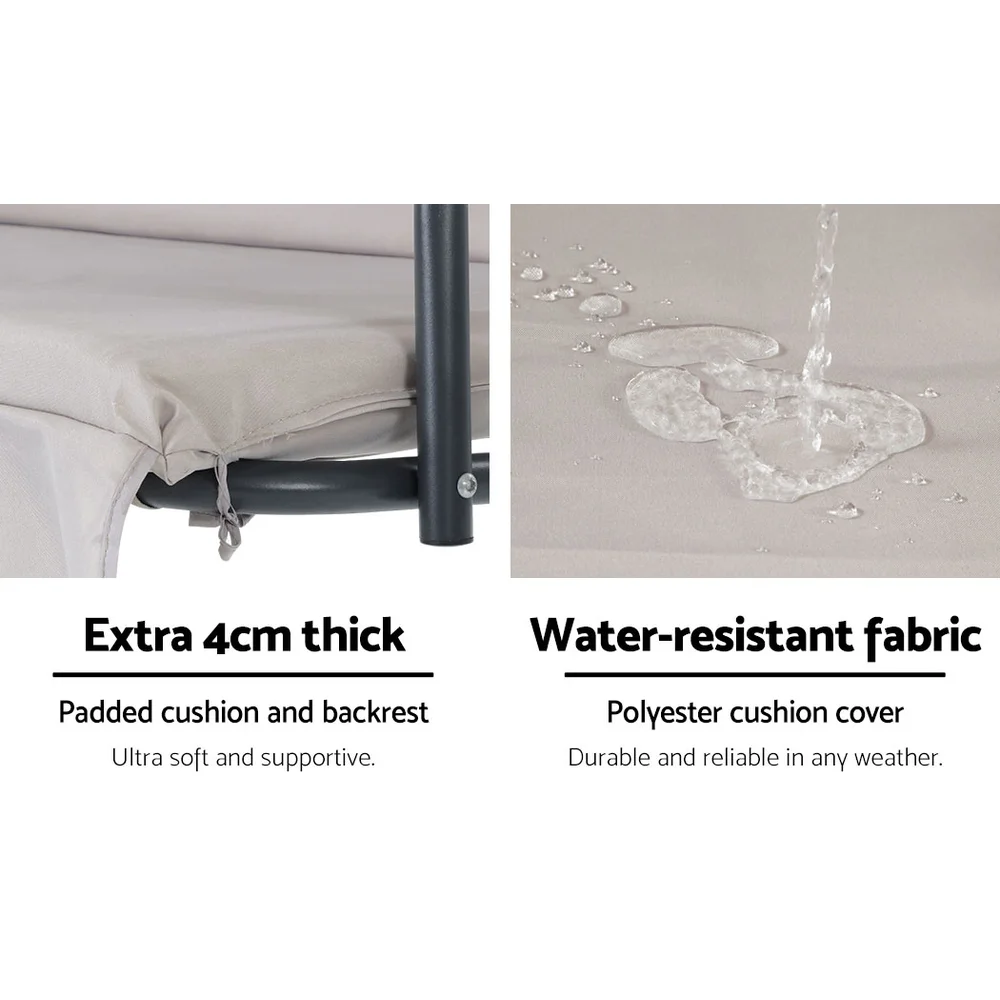 Gardeon 3-Seater Outdoor Swing Chair with Adjustable Canopy, Beige - Powder-Coated Steel Frame, Water-Resistant Cushions
