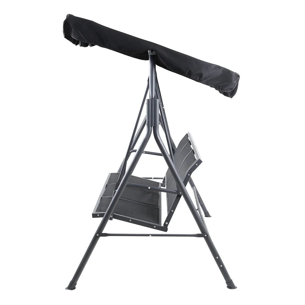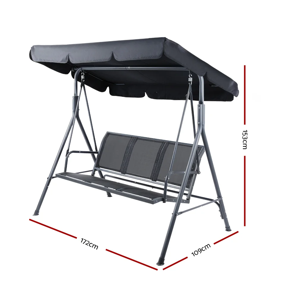 Gardeon 3-Seater Outdoor Swing Chair: Black Steel Frame, Adjustable Canopy, Water-Resistant, UV-Protected, 172x109x153cm