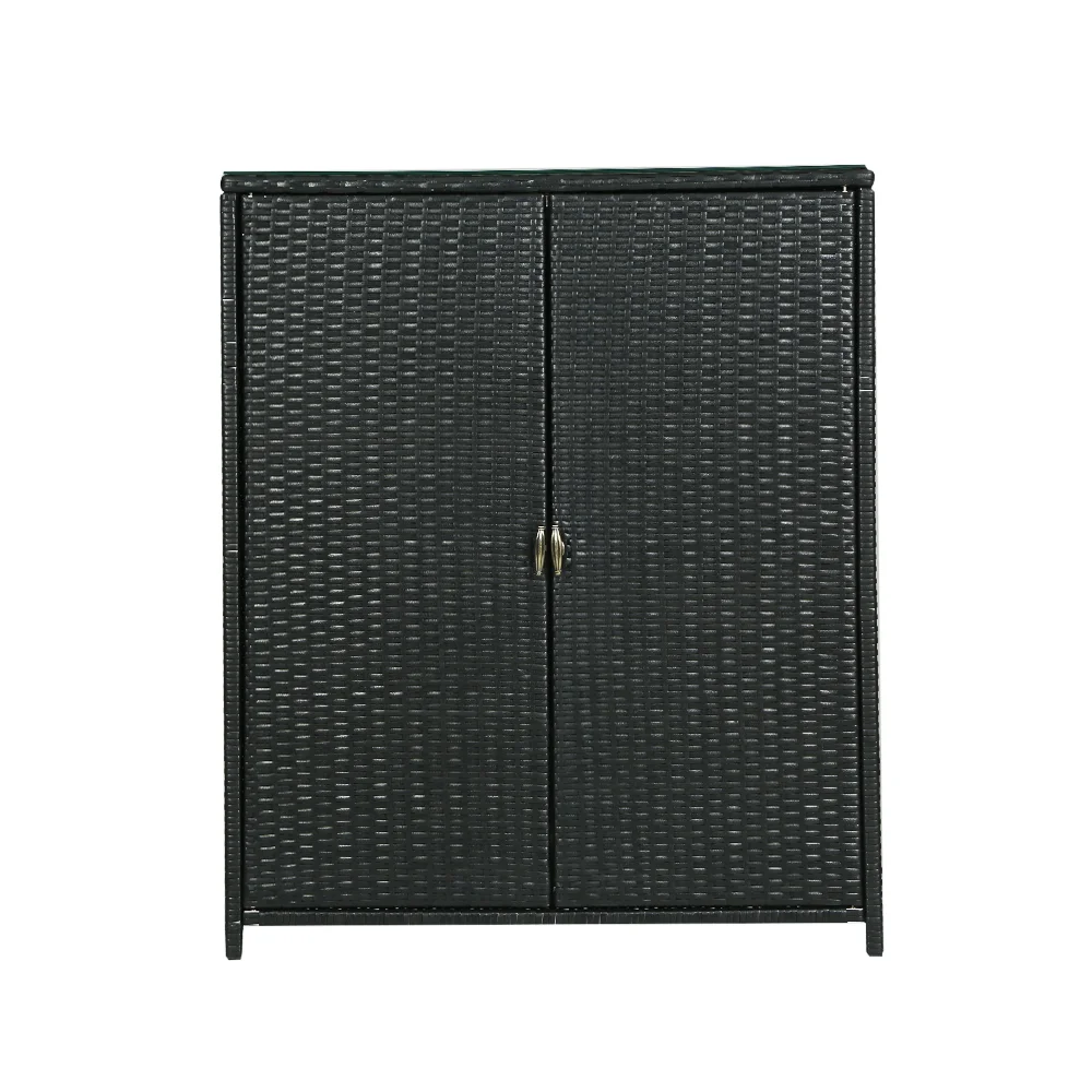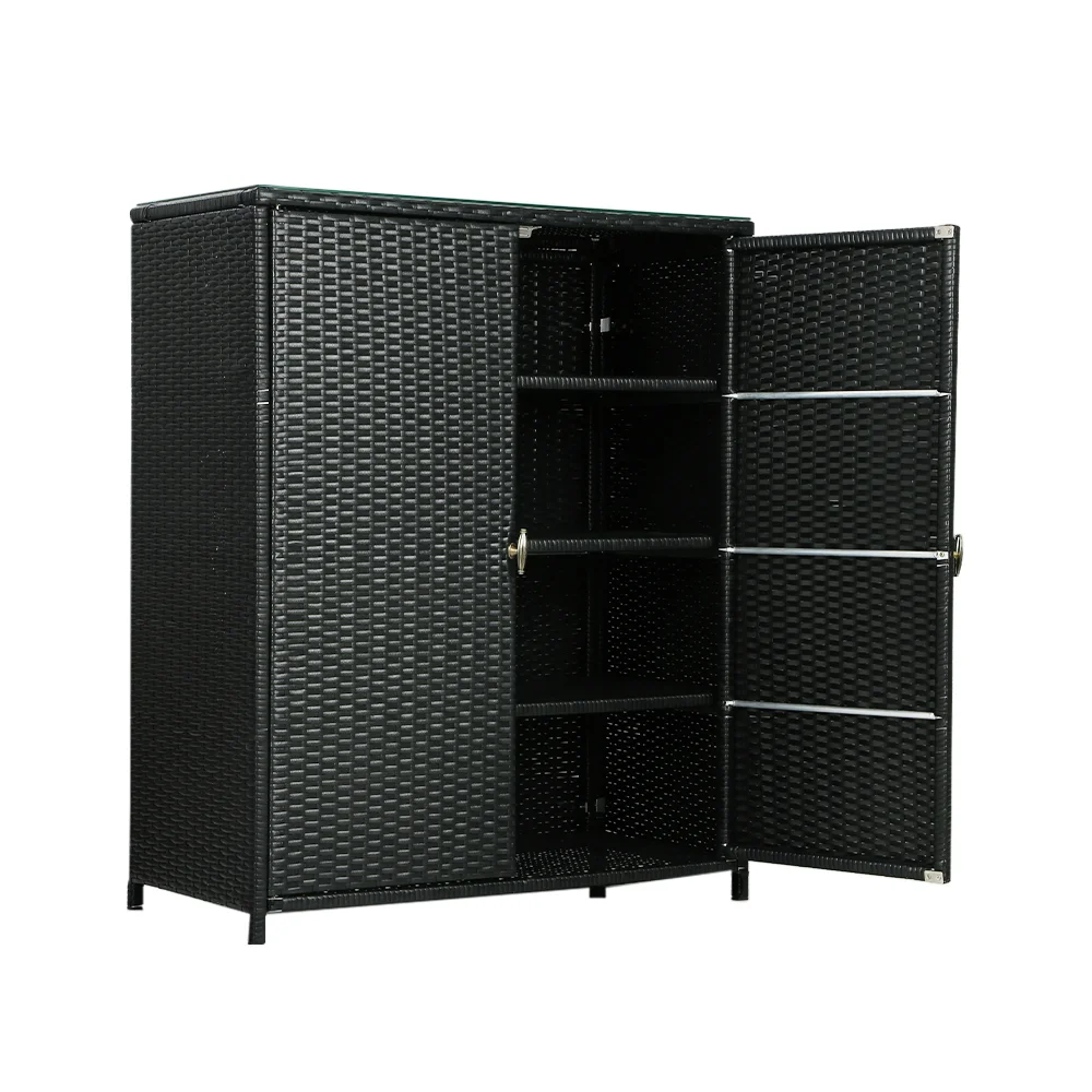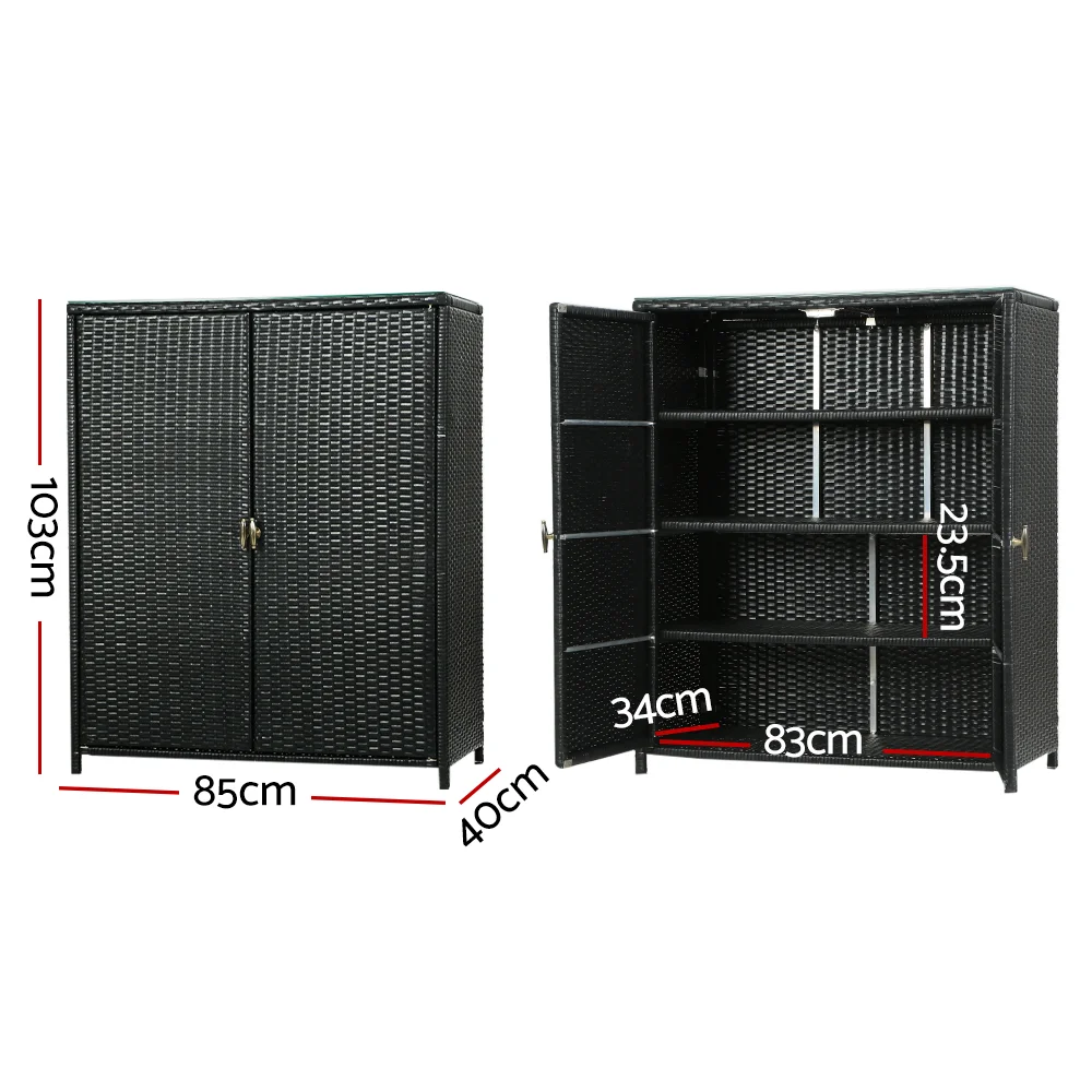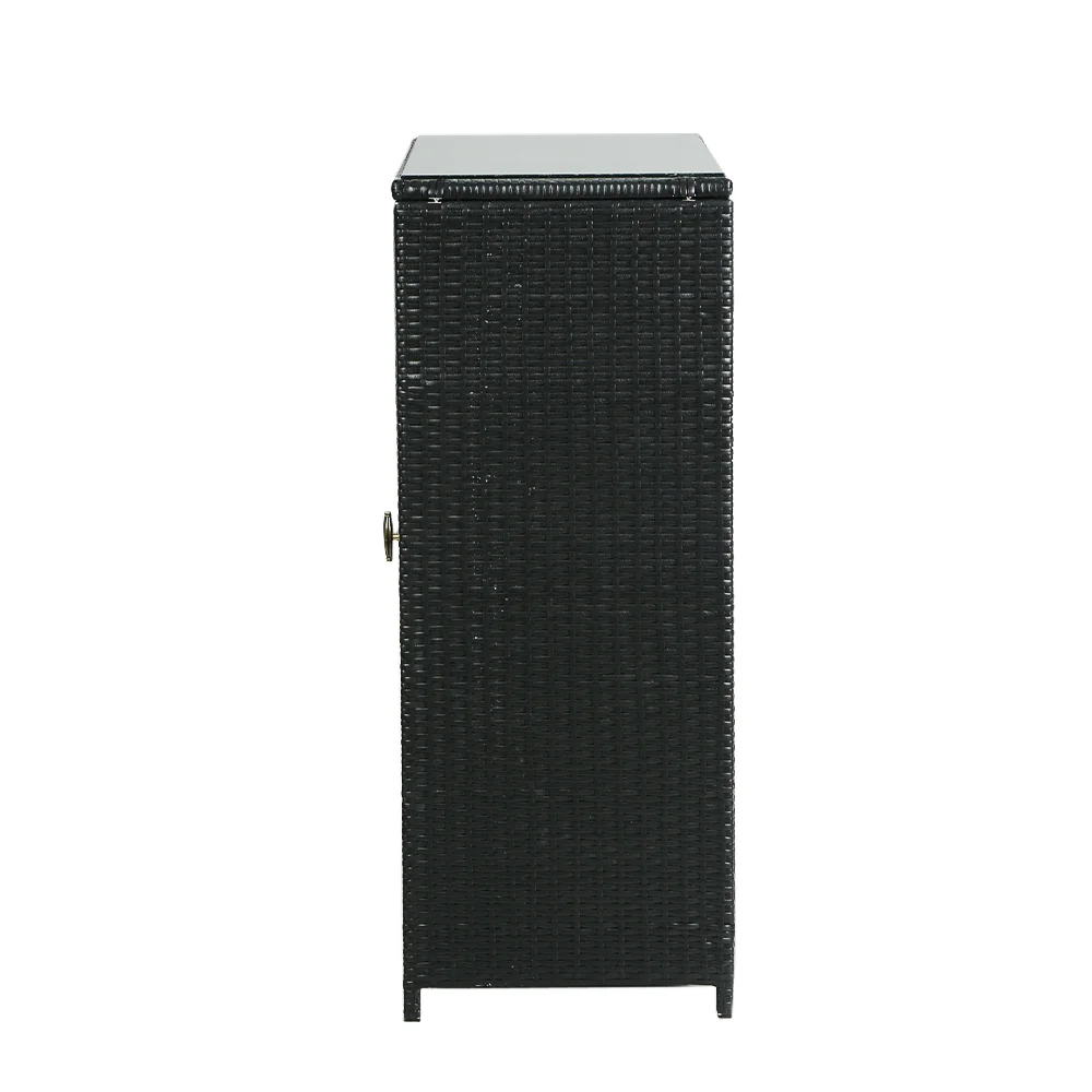 Enhance your outdoor space with the Gardeon Outdoor Storage Cabinet. This versatile 2-in-1 design serves as both a storage solution and bar table, perfect for organizing garden essentials and tools. Crafted with a sturdy aluminium frame and handwoven PE wicker, it offers durability and weather resistance. Features include exquisite handles, wall attachment points, and a thick tempered glass top with suction pads. With a 90kg weight capacity, this stylish cabinet is your ultimate outdoor companion.