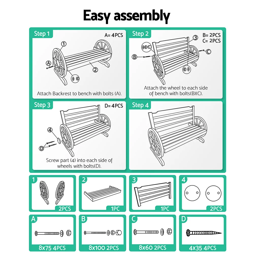 Gardeon 3-Seater Outdoor Garden Bench - Rustic Fir Wood Wagon Wheel Design, UV-Resistant, 300kg Capacity, 142cm