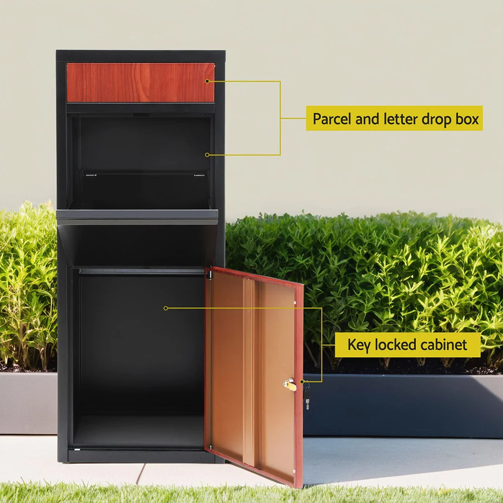 Gardeon Freestanding Parcel Drop Box, Steel, 42x38x102cm, Black, Secure 2-Slot Design, Water-Resistant, Large Capacity