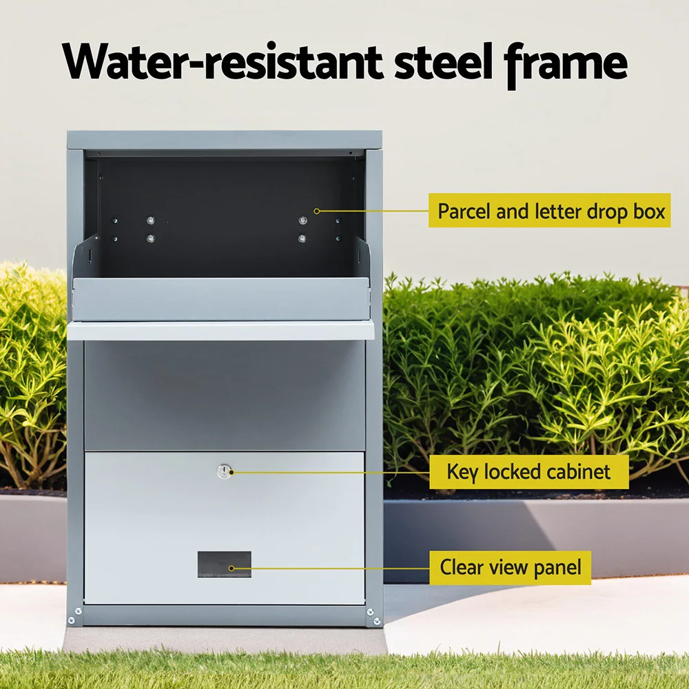 Gardeon Parcel Drop Box, Steel, 47x27x75cm, Grey, Secure Package Delivery, Water-Resistant, Large Capacity