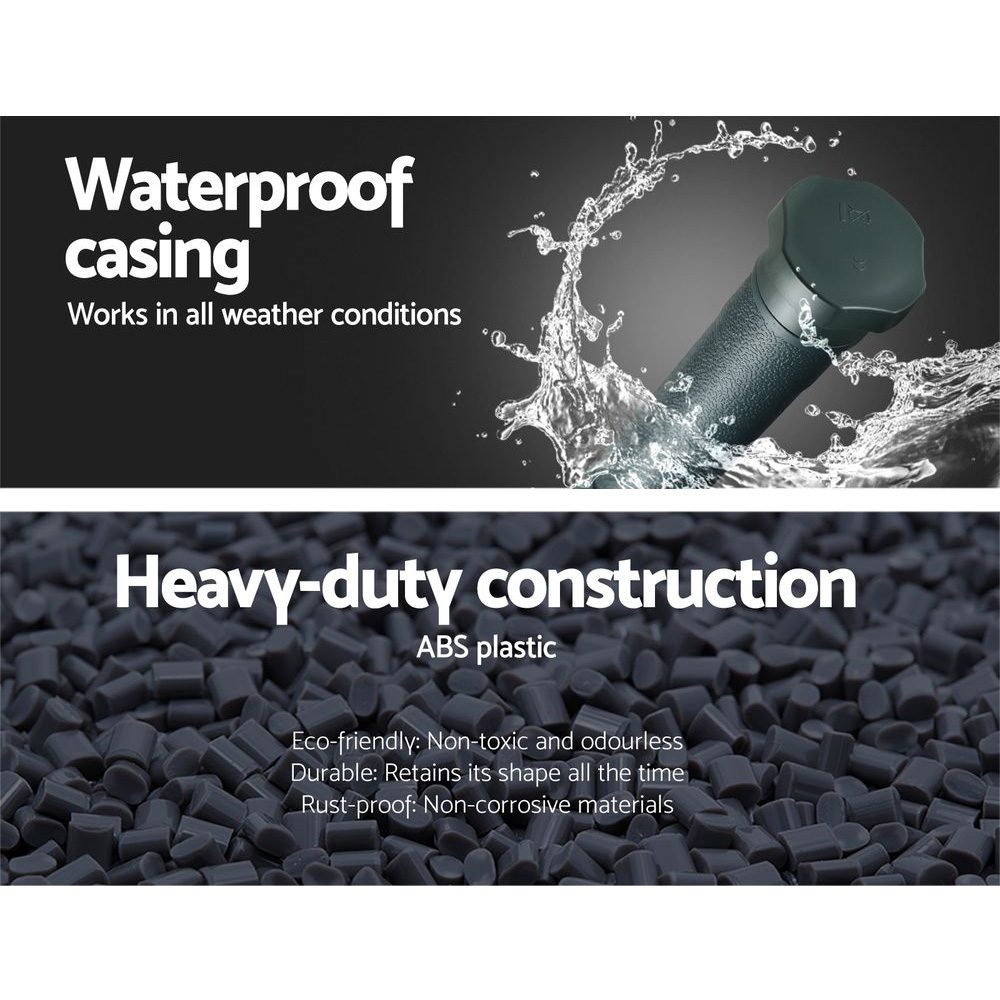 Keep your outdoor spaces safe with the Gardeon Snake Repeller 10X. Crafted from durable ABS plastic, this weatherproof and eco-friendly device uses cutting-edge sonic pulse and vibration technology to humanely deter snakes, moles, rats, and mice. With a coverage range of 40m in diameter, its effect can be amplified by using multiple units, making it ideal for gardens, farms, or camping. Operating 24/7 for up to six months on 4 D-size batteries (not included), it's a wireless, hassle-free pest solution.