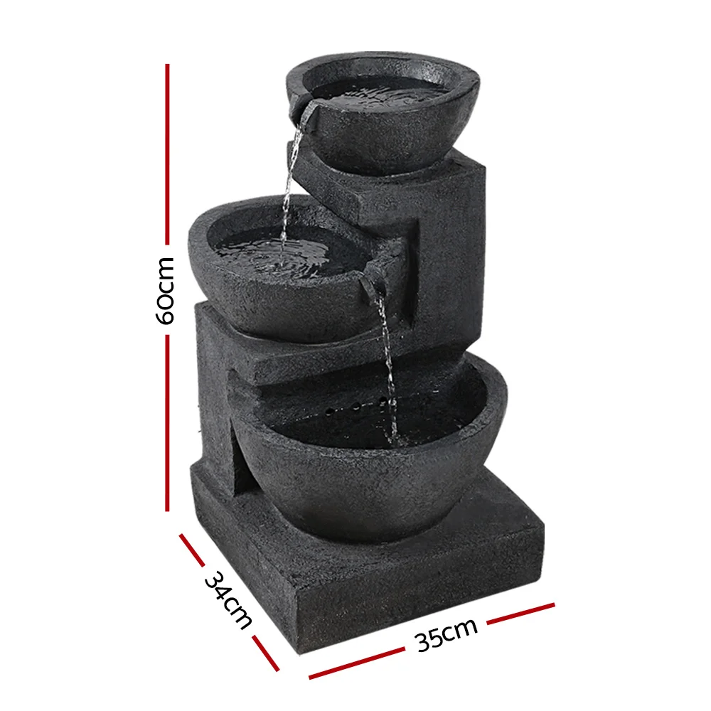 Gardeon 52cm Solar Water Feature with LED - Polyresin, 3 Tiers, Indoor/Outdoor, Energy-Efficient, Decorative Fountain