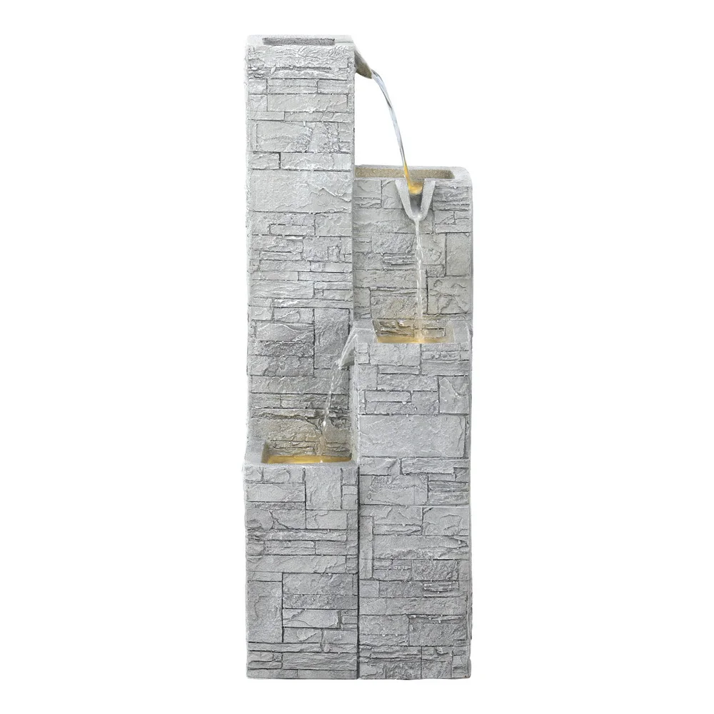 Gardeon 3-Tier Solar Fountain, Grey Polyresin, 90cm, Indoor/Outdoor, LED Lit, 350L/h Flow, Solar-Powered with Battery