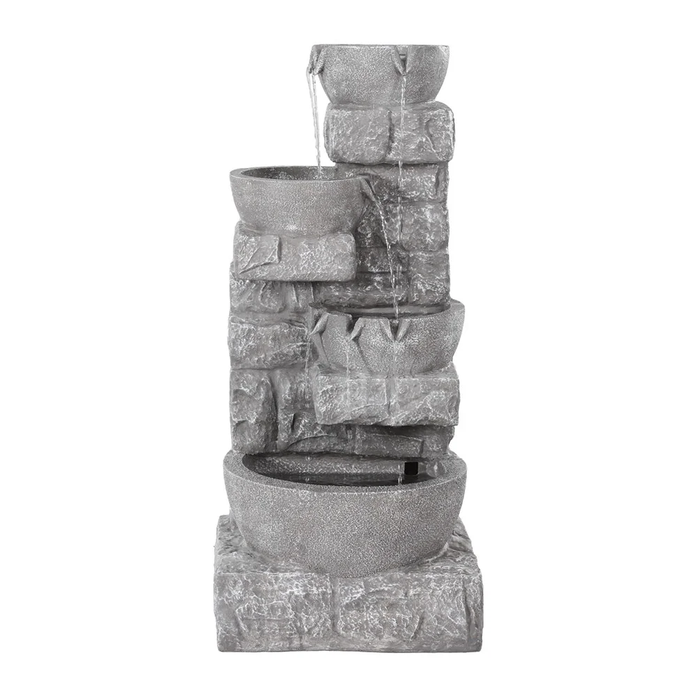 Gardeon Solar Fountain 4-Tier Cascading Pot: Polyresin, 72.4CM Tall, Solar-Powered with LED, Indoor/Outdoor Use