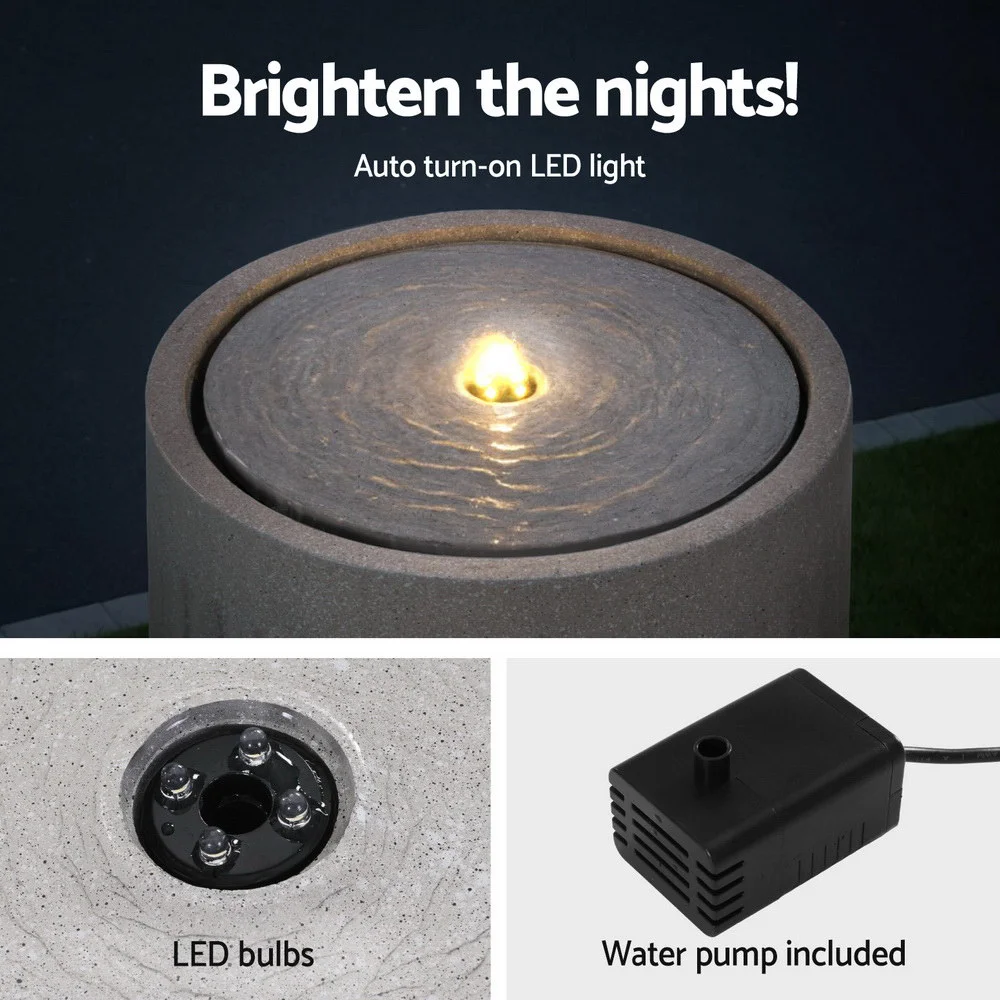 Gardeon Beige Solar Fountain with LED Lights – Durable Polyresin, 36x36x50.5cm, Energy-Efficient, Outdoor Water Feature
