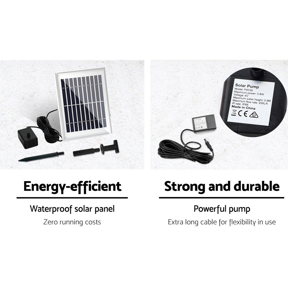 Gardeon Solar Pond Pump Fountain with Submersible Filter Box, 6.6FT Lift, 800L/H Flow, Eco-Friendly DC Technology