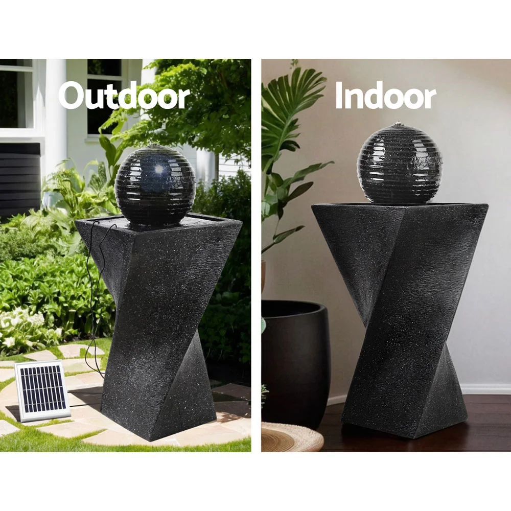 Enhance your garden with the Gardeon Solar Water Feature Twisted Fountain. This elegant black fountain, crafted from durable polyresin, features a twist design with captivating LED lights for nighttime allure. Solar-powered for eco-friendly operation, it includes a rechargeable Lithium battery, water pump, and easy installation. Ideal for indoor or outdoor use, it promises a hassle-free centrepiece delivered to your doorstep. Note: Never operate the pump dry to avoid damage.