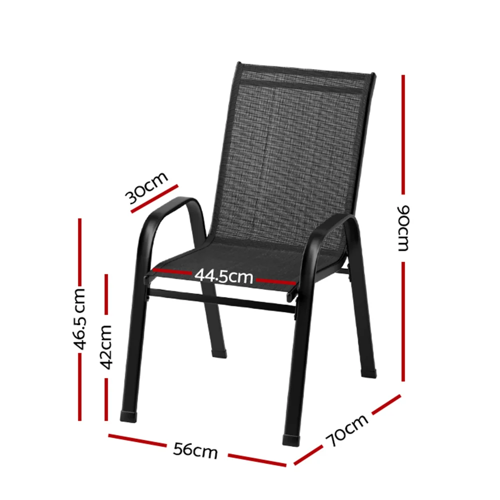 Gardeon 2PC Stackable Outdoor Dining Chairs - Black, Steel Frame, Weather-Resistant, 150kg Capacity, Easy Assembly