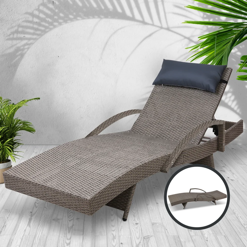 Gardeon Adjustable Sun Lounge: Weather-Resistant Wicker Armchair with Cushions, 4-Position Backrest, Grey & Beige