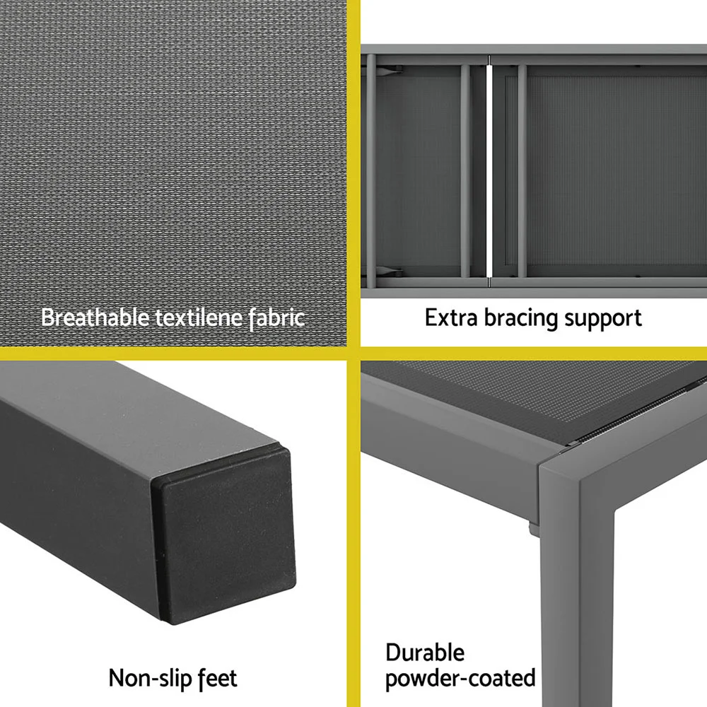 Discover the epitome of relaxation with the Gardeon Sun Lounge Outdoor Lounger. Crafted with a durable powder-coated aluminium frame and breathable textilene fabric, it is weather and UV-resistant. Featuring 5 adjustable backrest settings for optimal comfort, non-slip feet, and smooth wheels for easy mobility, this lounger supports up to 150kg. Perfect for any setting, assembly is a breeze. Elevate your sunny days with Gardeon!