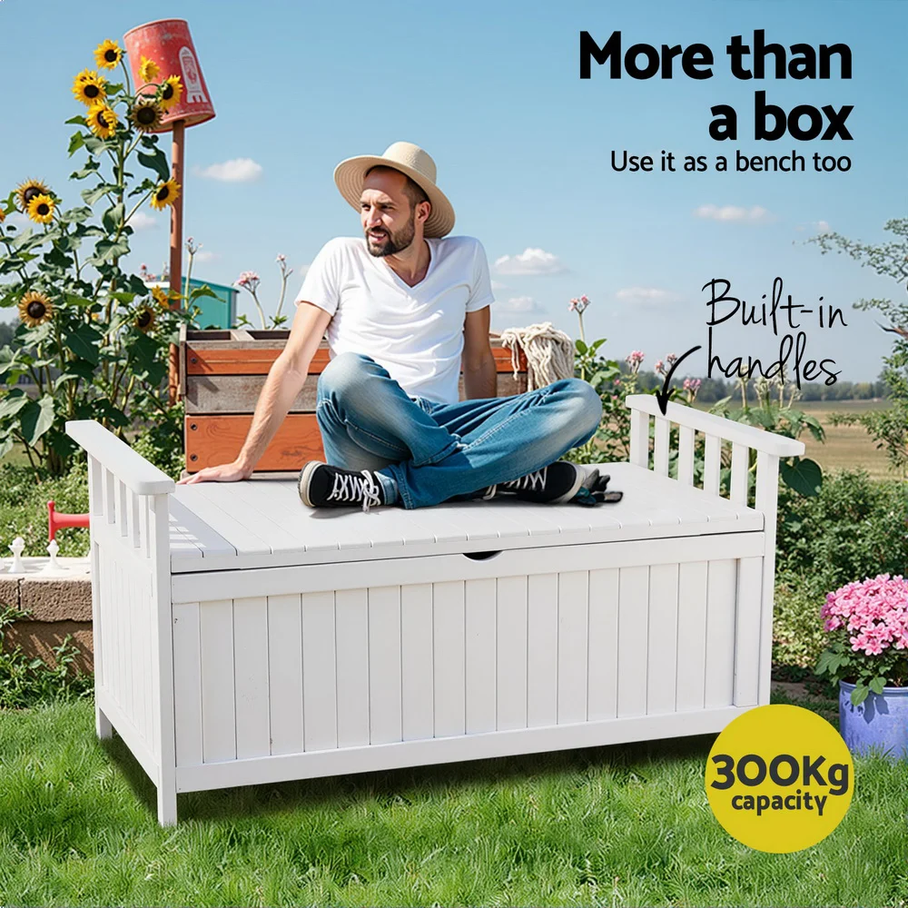 Gardeon 160L White Fir Wood Outdoor Storage Bench Box - Water-Resistant, Insect-Resistant, Indoor/Outdoor Use