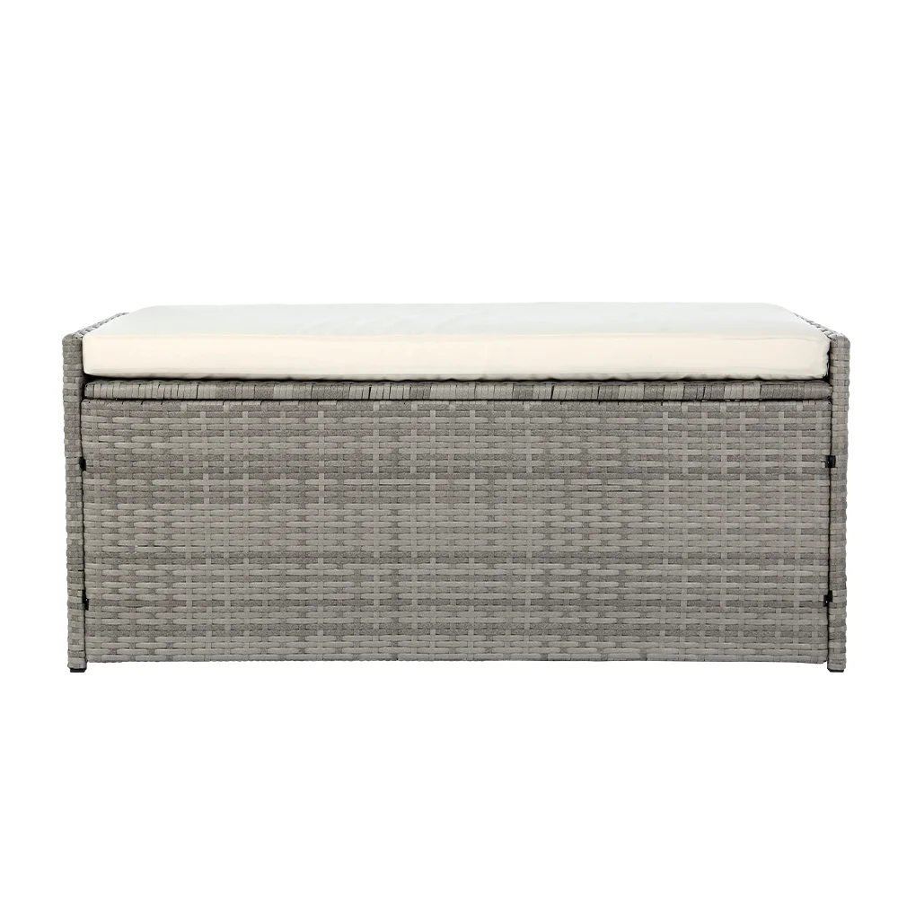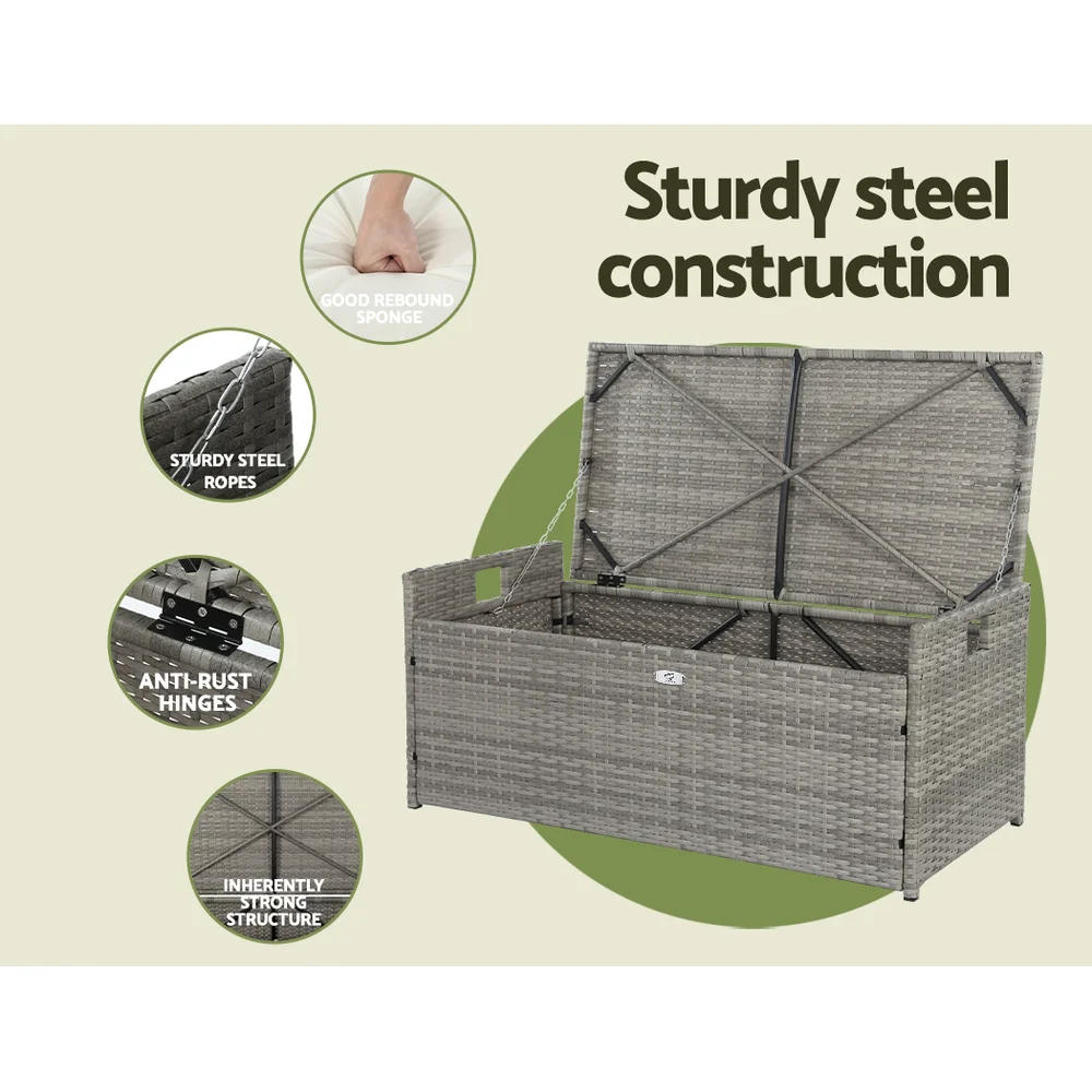 Gardeon 102L Wicker Outdoor Storage Bench - Durable, UV-Resistant, 2-in-1 Design with Cushion, Grey, 300kg Capacity