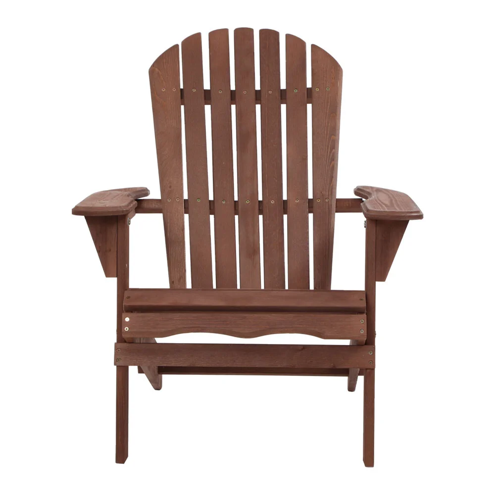 Gardeon Adirondack Wooden Foldable Beach Chair, Brown - Eco-Friendly, High Back, Wide Armrests, Canadian Fir Wood