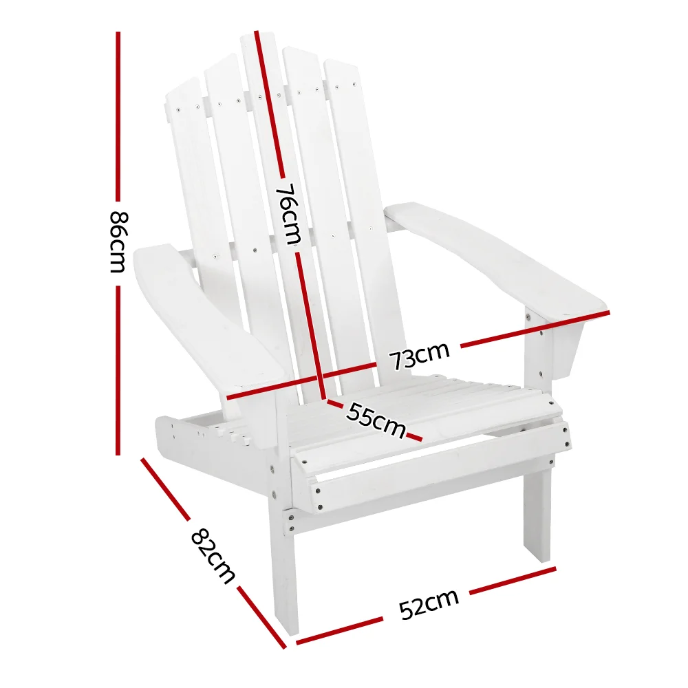 Gardeon White Adirondack Outdoor Chair - Eco-Friendly Fir Wood, 150kg Capacity, UV-Resistant, Wide Armrests, 52x82x86cm