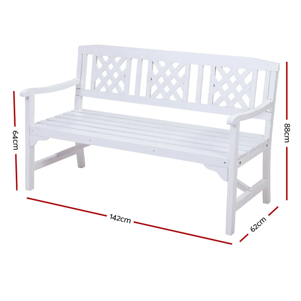 Gardeon 3-Seater White Wooden Garden Bench - Handcrafted Fir Wood, Weather-Resistant, 142x62x88cm, 300kg Capacity