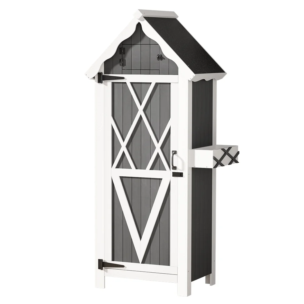 Introducing the Gardeon Wooden Storage Shed, the perfect blend of style and practicality for your outdoor space. Crafted from solid Fir wood, it offers 3-tier shelving, 3 metal hangers, and a charming cuckoo-style upper compartment, all safeguarded by a lockable, magnetic latched door. Its weather-resistant build and water-resistant asphalt roof ensure durability. Ideal for indoor or outdoor use, this shed promises easy assembly and a rustic appeal, complete with a 1-year warranty.