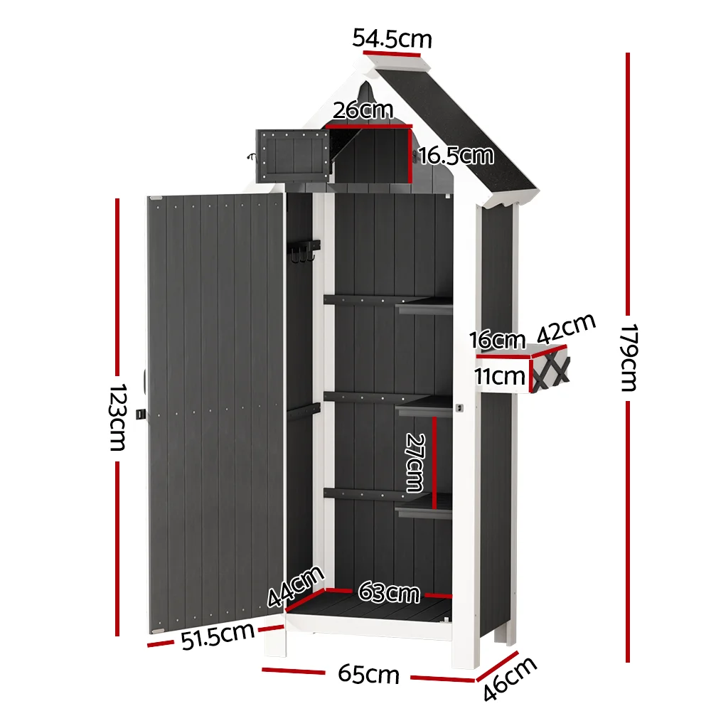 Gardeon Wooden Outdoor Storage Shed - Fir Wood, Weather-Resistant, 3-Tier Shelves, 65x46x179cm, Lockable Garden Cabinet