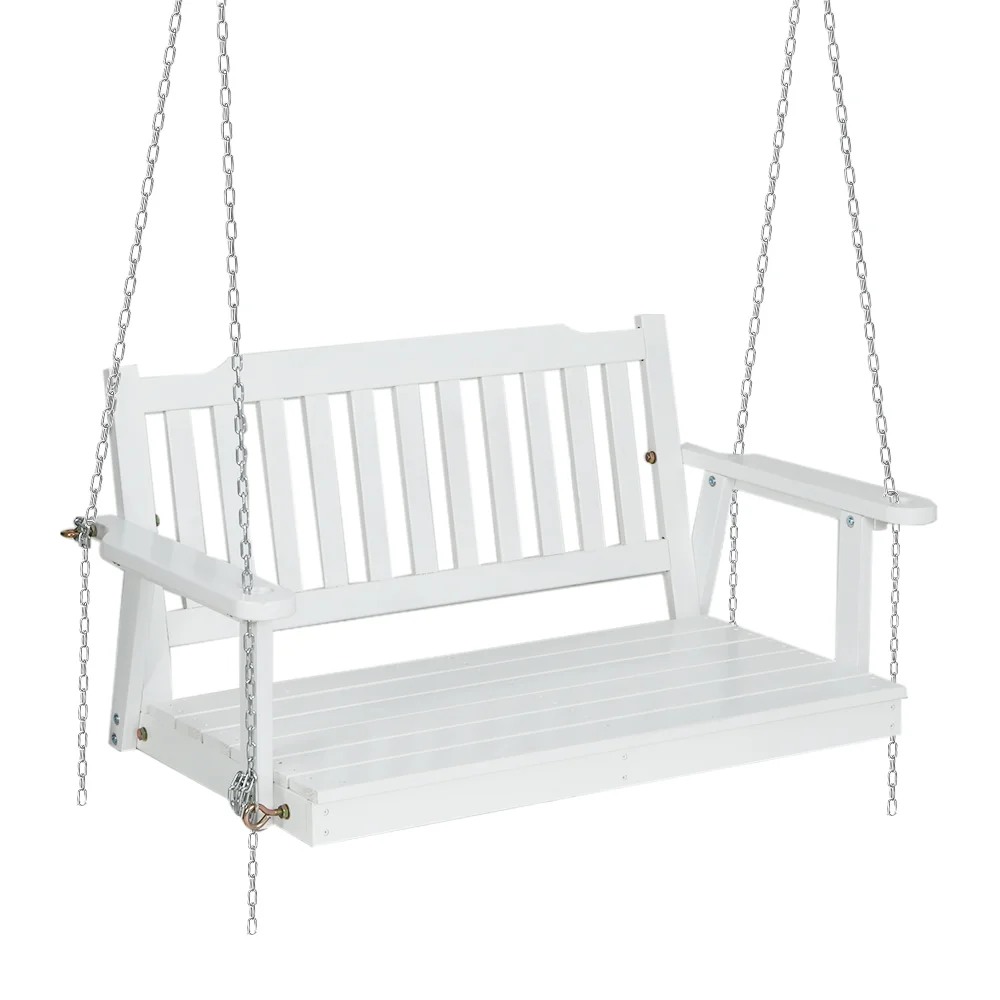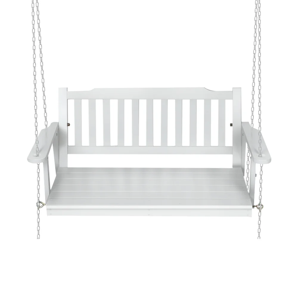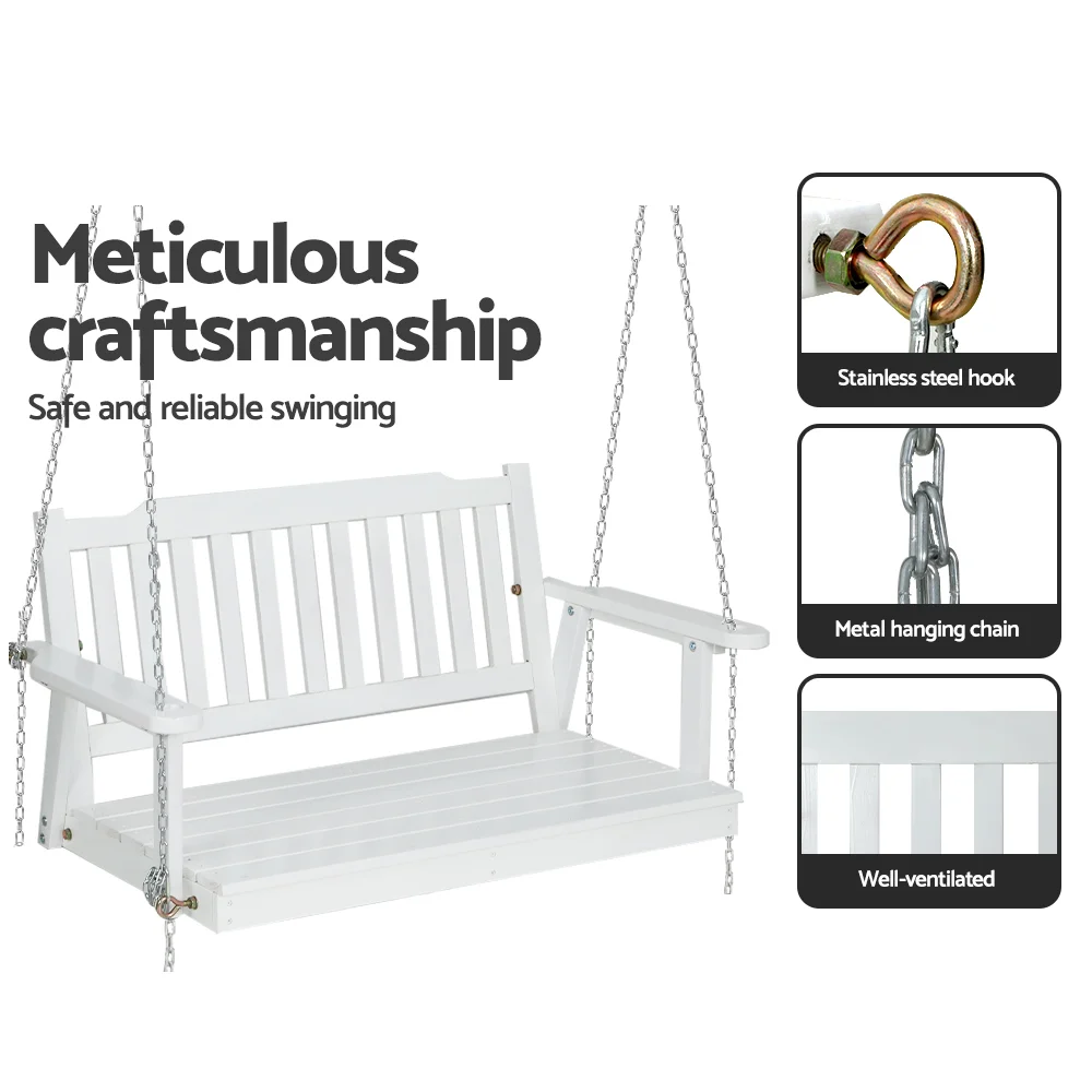 Gardeon Wooden Porch Swing Chair - White Fir Wood 2-Seater with Heavy-Duty Chain, Indoor/Outdoor Use, 300kg Capacity
