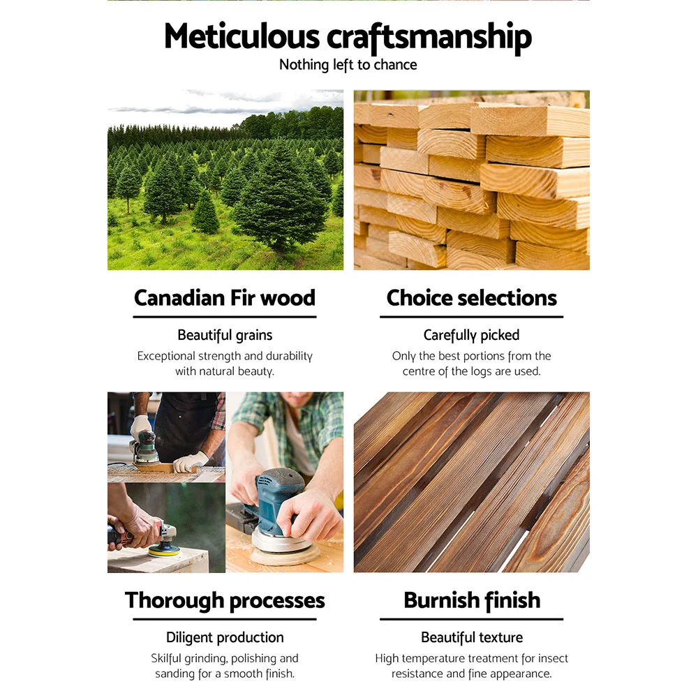 Gardeon 160cm Wooden Garden Bridge - Burnt Fir Wood, Classic Arch with Sculpted Railings, Weatherproof, 160kg Capacity