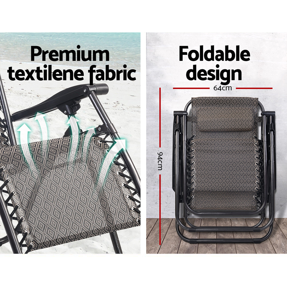 Gardeon 2PC Zero Gravity Chair Folding Outdoor Recliner with Adjustable Headrest, Steel Frame, Beige, 150kg Capacity