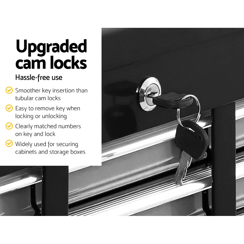 Giantz 7 Drawer Black Steel Tool Box Cabinet Chest Trolley with Lockable Castors, Ball-Bearing Slides & 100kg Capacity