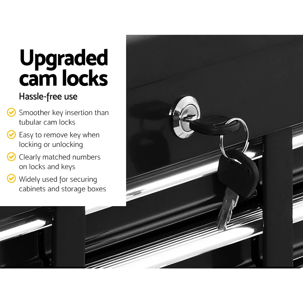 Giantz 14 Drawer Steel Tool Box Chest & Trolley, Lockable Garage Storage with 360° Castors, 61.5x33x112cm, Black