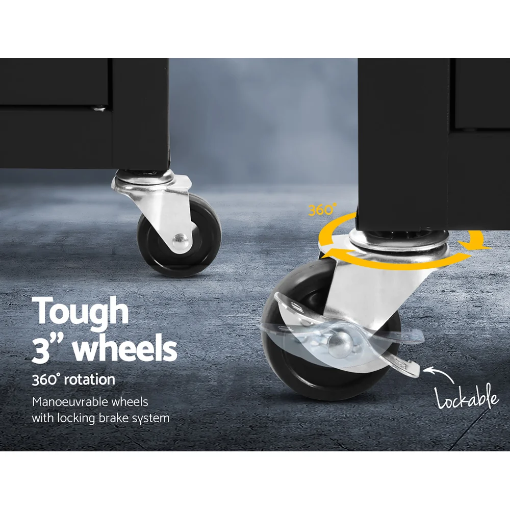 Giantz 6 Drawer Steel Tool Box Cabinet Trolley - Lockable, Non-Slip Liners, 360° Castor Wheels, 100kg Capacity