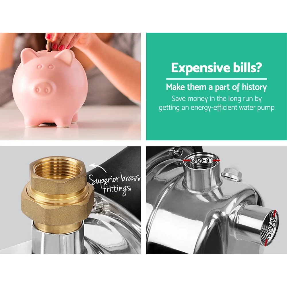Giantz 2000W Weatherproof High Pressure Garden Water Pump | 7200L/H Flow, Stainless Steel, 51m Head, 1-Year Warranty