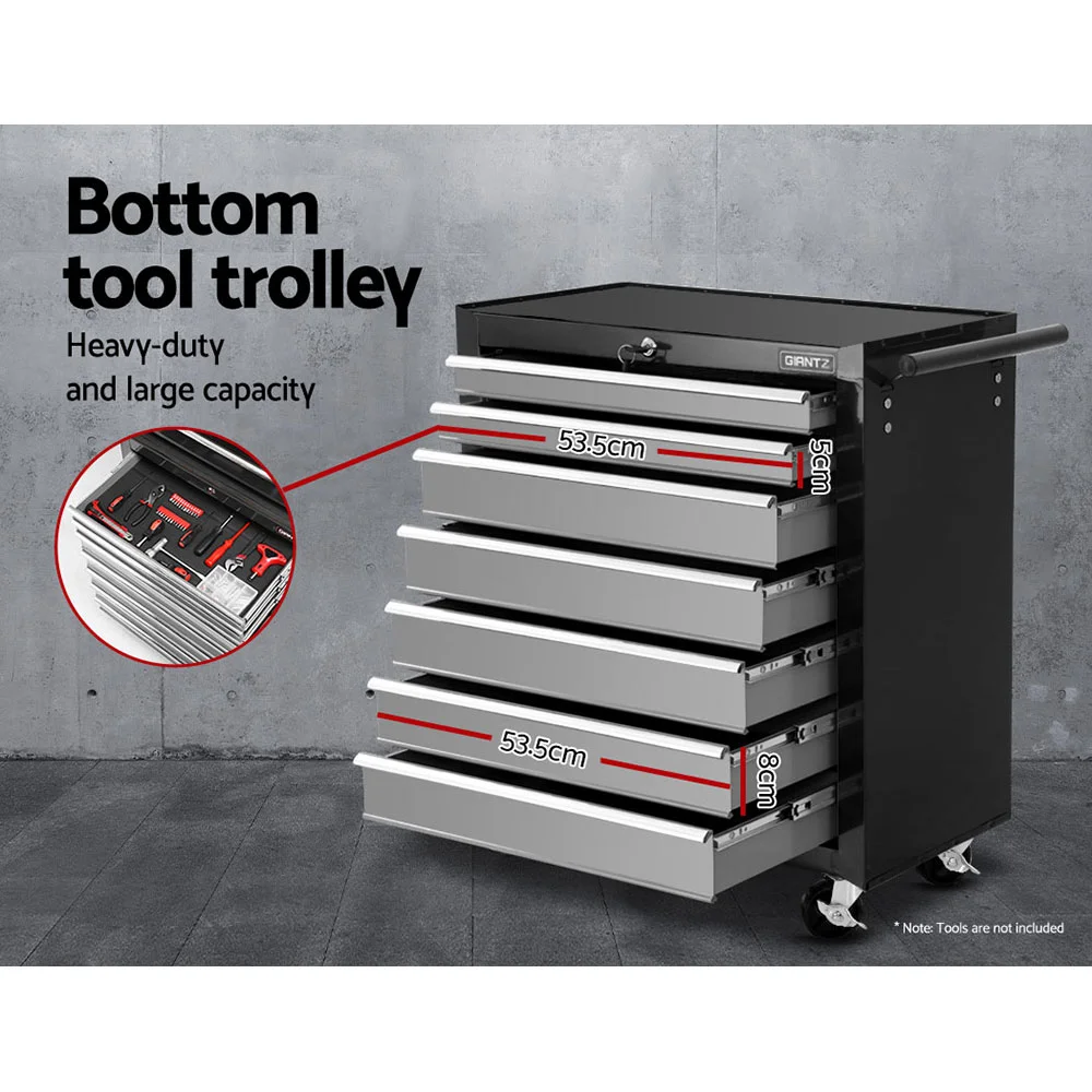 Giantz 7 Drawer Steel Tool Box Cabinet Chest Trolley with Lockable Wheels, Non-Slip Liners, and Ball Bearing Slides
