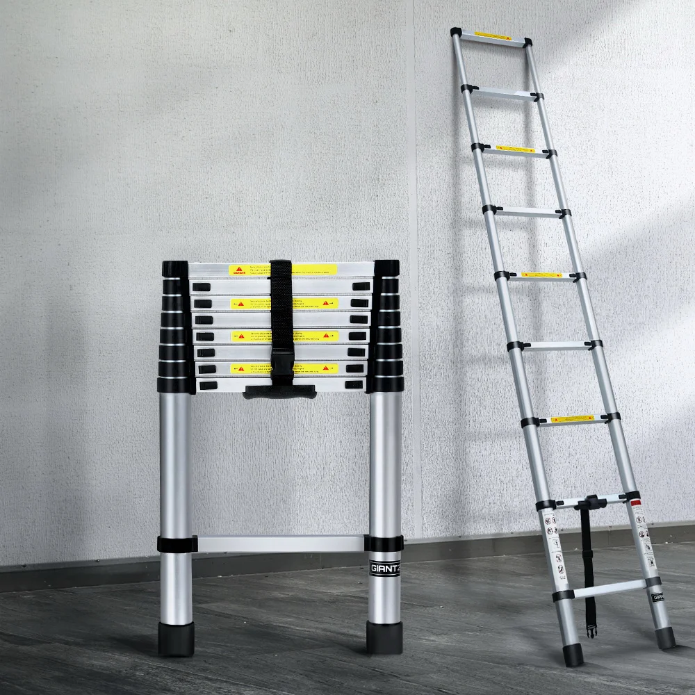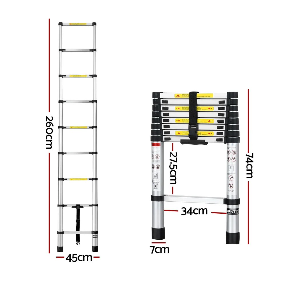 Giantz 2.6M Telescopic Ladder - Premium Aluminium, Extendable, Rust-Resistant, Non-Slip, Space-Saving, Easy Carry