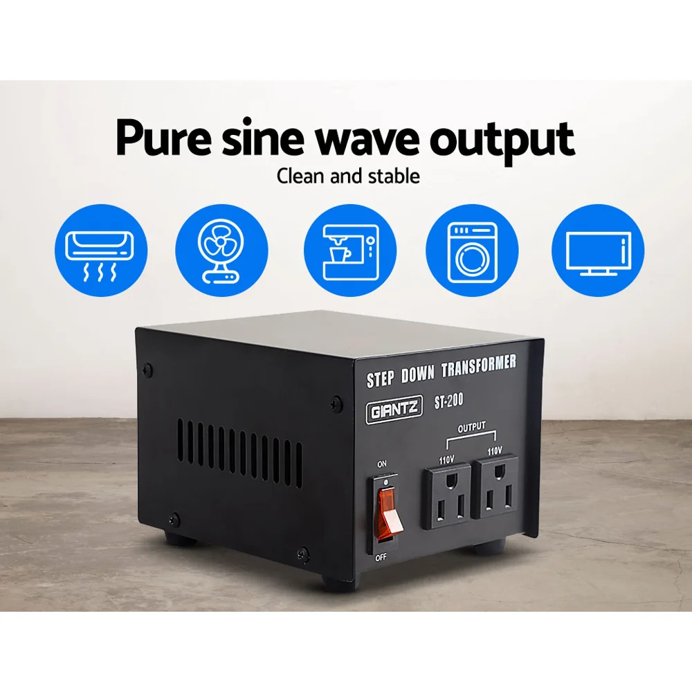 Giantz 200W Step Down Transformer 240V to 110V Converter | Pure Sine Output | Ultra Quiet & Portable with Bonus Fuses