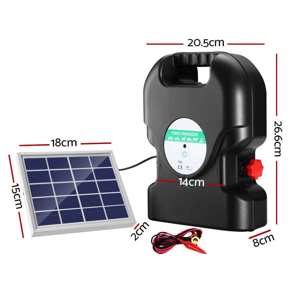 Keep your livestock secure with the Giantz Fence Energiser 20KM Solar Powered 1.2J Electric. Ideal for both farm and suburban settings, this energiser uses solar power to maintain a powerful, waterproof fence system. With a fully charged battery lasting up to 20-29 sunless days, it ensures continuous protection. The unit's design allows for easy installation and features a brief pulse function to prevent harmful shocks. Compact and lightweight, it's a low-maintenance solution for safeguarding your property. Comes completed with connection cables, an adaptor, and 4 warning sign stickers, plus a 1-year warranty.