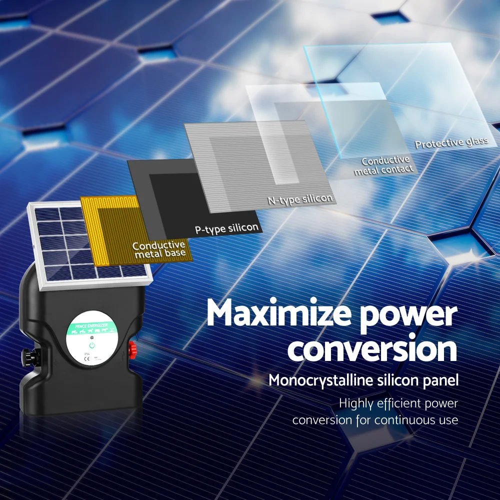 Giantz 20KM Solar Fence Energiser, 1.2J Output, Waterproof & Efficient Monocrystalline Panel, 20-29 Day Battery Life