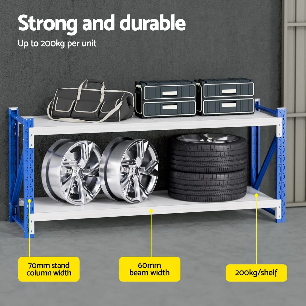 Giantz 2M x 0.9M Heavy Duty Steel Warehouse Shelving Rack, 200kg Per Tier, Adjustable Garage Storage Unit