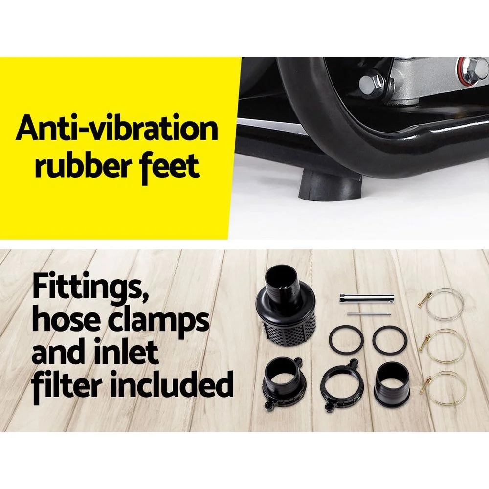 Experience unparalleled performance with the Giantz Petrol Water Pump 3" High Flow Transfer Fire Fighting Irrigation system. This powerhouse is perfect for a range of water pumping tasks, from heavy-duty cleaning to garden irrigation and emergency flood management. Boasting a robust 8hp, 235cc 4-stroke engine, it delivers an impressive flow rate of 60,000L/h, effortlessly transferring water up to four storeys high. The durable anti-corrosive tubular steel frame, ceramic and carbon seals, and an extra-large 4.5L fuel tank ensure long-lasting reliability and up to five hours of operation per fill. Complying with Euro 5 emissions standards, it’s an environmentally conscious choice.