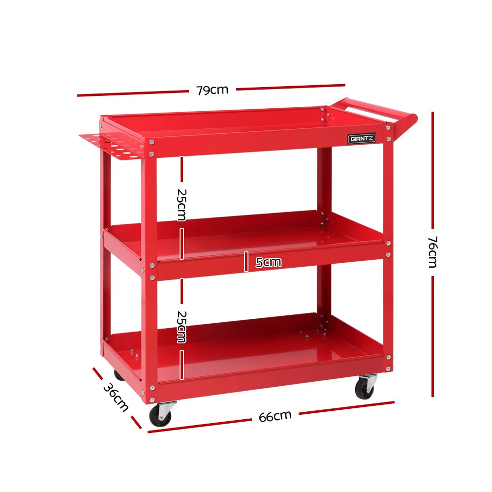 Giantz 3-Tier Tool Cart Trolley Red Steel 150kg Garage Workshop Storage Organiser with Lockable Castors 79cm