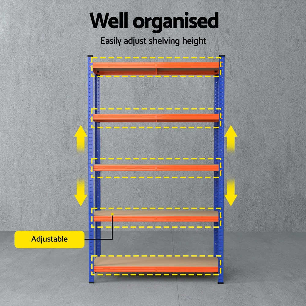 Giantz 3 x 1.8M Heavy Duty Garage Shelving Rack, 5-Tier Adjustable Steel Storage, 200kg Per Shelf, Boltless Assembly
