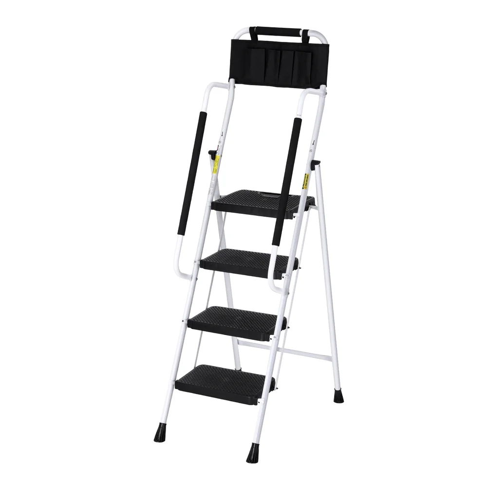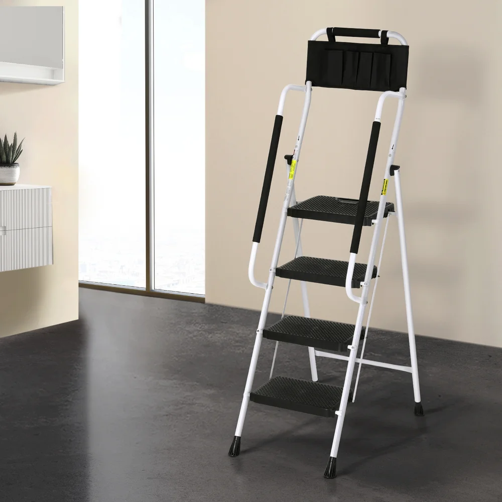 Giantz 4 Step Ladder - Steel, Foldable, Multi-Purpose, 150kg Capacity, Non-Slip Feet, Tool Bag, Safety Handrails