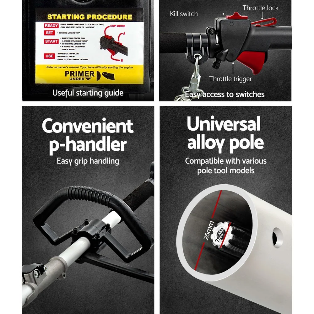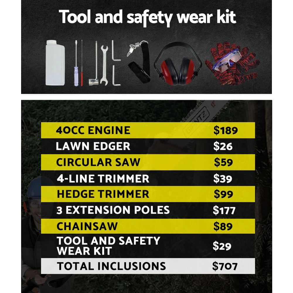 Giantz 40CC 4-Stroke 7-in-1 Pole Chainsaw Combo with Hedge Trimmer, Brush Cutter, Whipper Snipper & Extension Poles
