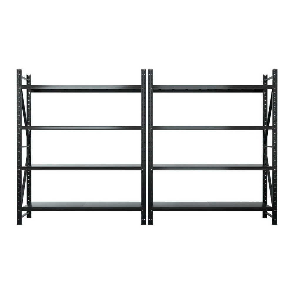 Giantz 4M x 2.4M Heavy Duty Garage Shelving Rack, Black Steel, 200kg Per Shelf, Adjustable, Z-Braced, 2 Pack