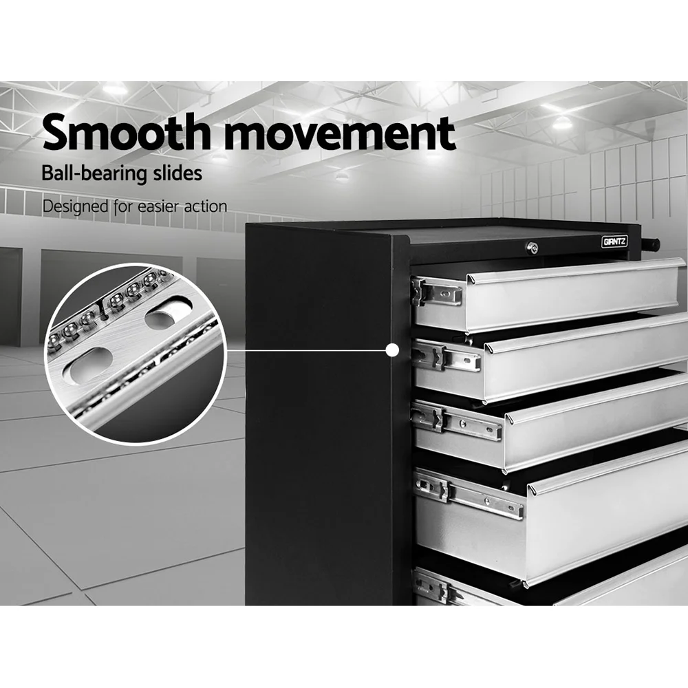Giantz 17-Drawer Steel Tool Box Cabinet Chest & Trolley, Black - Lockable, Ball-Bearing Slides, 360° Castor Wheels
