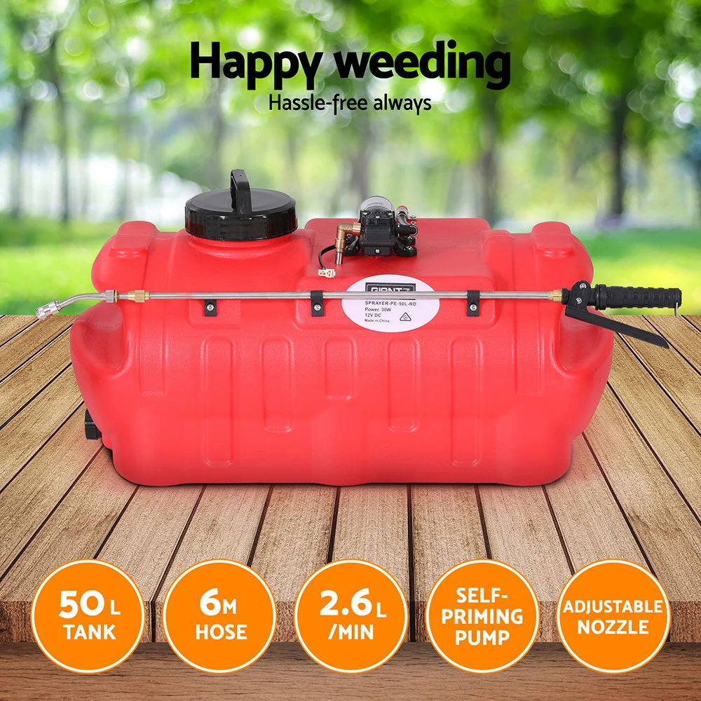 Giantz 50L ATV Weed Sprayer with Self-Priming Pump, 54cm Lance, 50psi Power, Durable PE Tank, Adjustable Nozzle, Red/