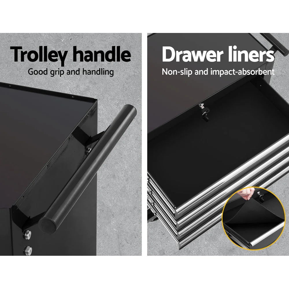 Giantz 17-Drawer Steel Tool Box Cabinet Chest & Trolley, Black - Lockable, Ball-Bearing Slides, 360° Castor Wheels