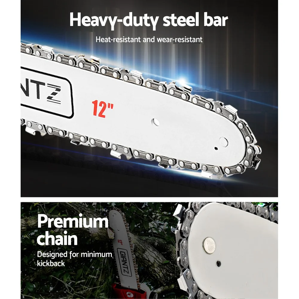Giantz 62CC Pole Chainsaw 12" Petrol, 4.3m Reach, Anti-Vibration, Bonus Kit, for Effortless High-Branch Cutting