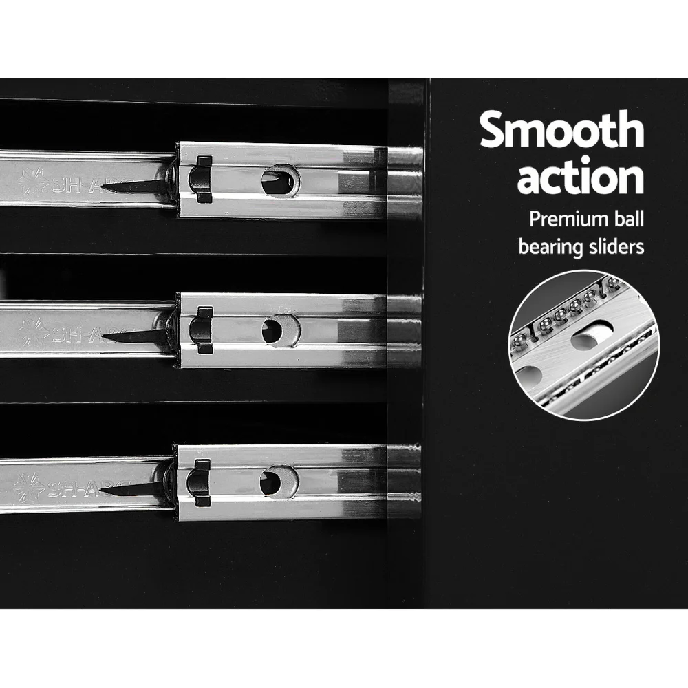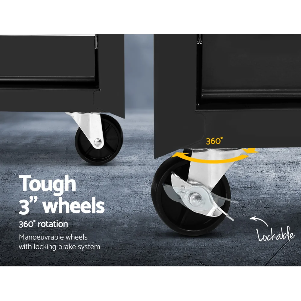 Giantz 17-Drawer Steel Tool Box Cabinet Chest & Trolley, Black - Lockable, Ball-Bearing Slides, 360° Castor Wheels